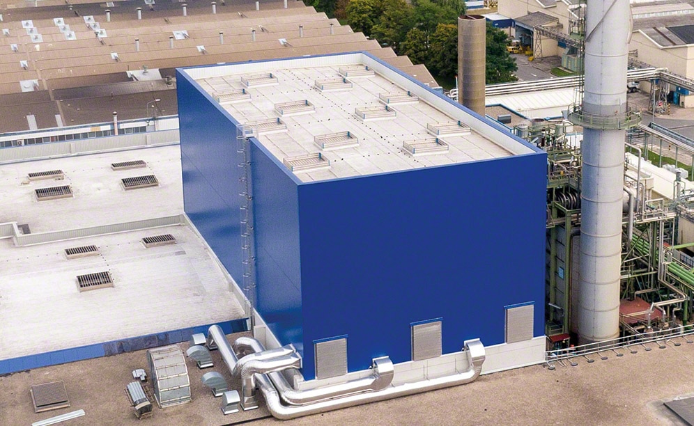 Almacén automático autoportante de Michelin en Vitoria integrado con producción