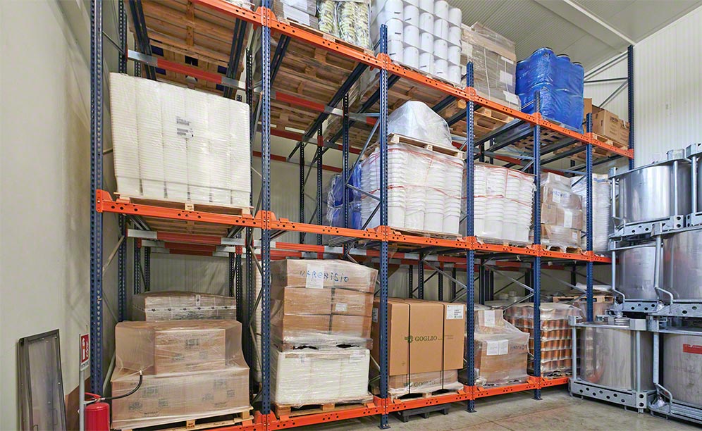 Gracias a la combinación de sistemas de almacenamiento por compactación, la compañía italiana cuenta con un almacén optimizado, donde la mercancía se almacena en el sistema de almacenamiento adecuado en función de sus características.