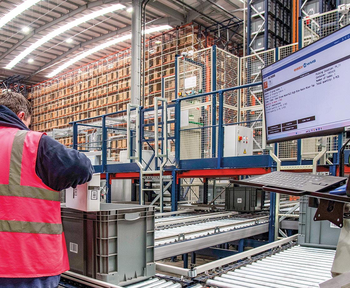 Los productos más pequeños, como llaves y accesorios de baño, se ubican en un sistema de almacenamiento automatizado de 12 metros de altura para 7,900 cajas. “Con esta solución hemos notado una mejora sustancial en comparación con nuestra actividad manual anterior. Su rapidez abasteciendo la zona de picking ha incrementado la precisión y reducido los errores”, afirma Bacon. Para potenciar la preparación de pedidos también se han instalado dispositivos luminosos put-to-light en racks ubicados justo detrás de los dos puestos de picking.