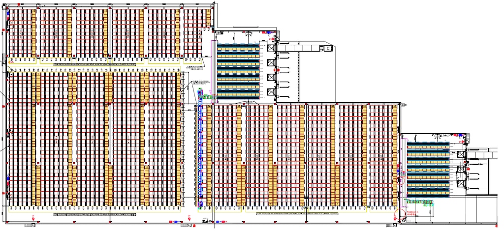 El centro logístico de 8.000 m2 estará compuesto por 18 bloques de racks de 11 m de altura, con cinco niveles. La mercancía se almacenará en cada bloque, clasificada en función del cliente al que pertenece y su nivel de demanda.