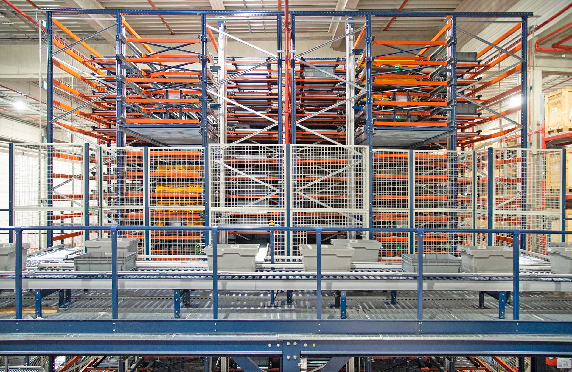 El Sistema Shuttle es una solución automática de almacenaje para cajas que agiliza la preparación de pedidos, proporcionando un flujo constante de productos desde las ubicaciones en el almacén hasta los puestos de preparación.